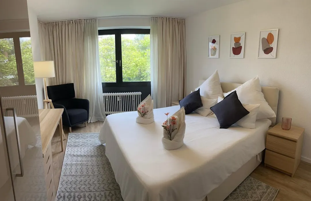 Freizeitpark Niederheider Wäldchen befindet sich in Düsseldorf, in einer 25 Gehminuten Entfernung von diesem 60 m^2 großen Apartment. Das Schloss Benrath erreichen Sie von dieser Unterkunft aus in 25 Minuten zu Fuß.